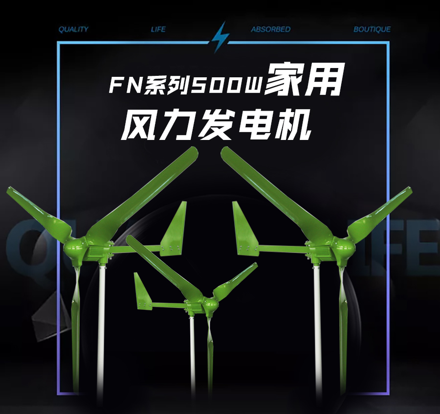 8、采用自動對風(fēng)裝置,使風(fēng)力發(fā)電機自動調(diào)整對準(zhǔn)迎風(fēng)方向,兼顧調(diào)向靈敏性和穩(wěn)定性,風(fēng)力較大情況下發(fā)電機尾翼斜置限速保護(hù)風(fēng)機不受損。