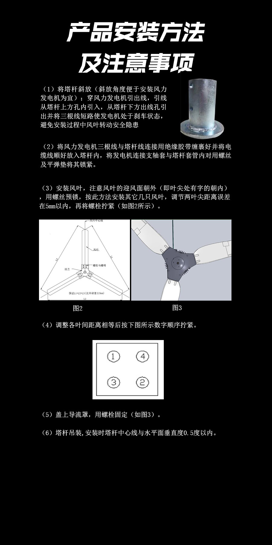 6、獨特的尾舵預偏設計,自動精確對準迎風方向,提高輸出功率同時兼顧調整和強風保護。